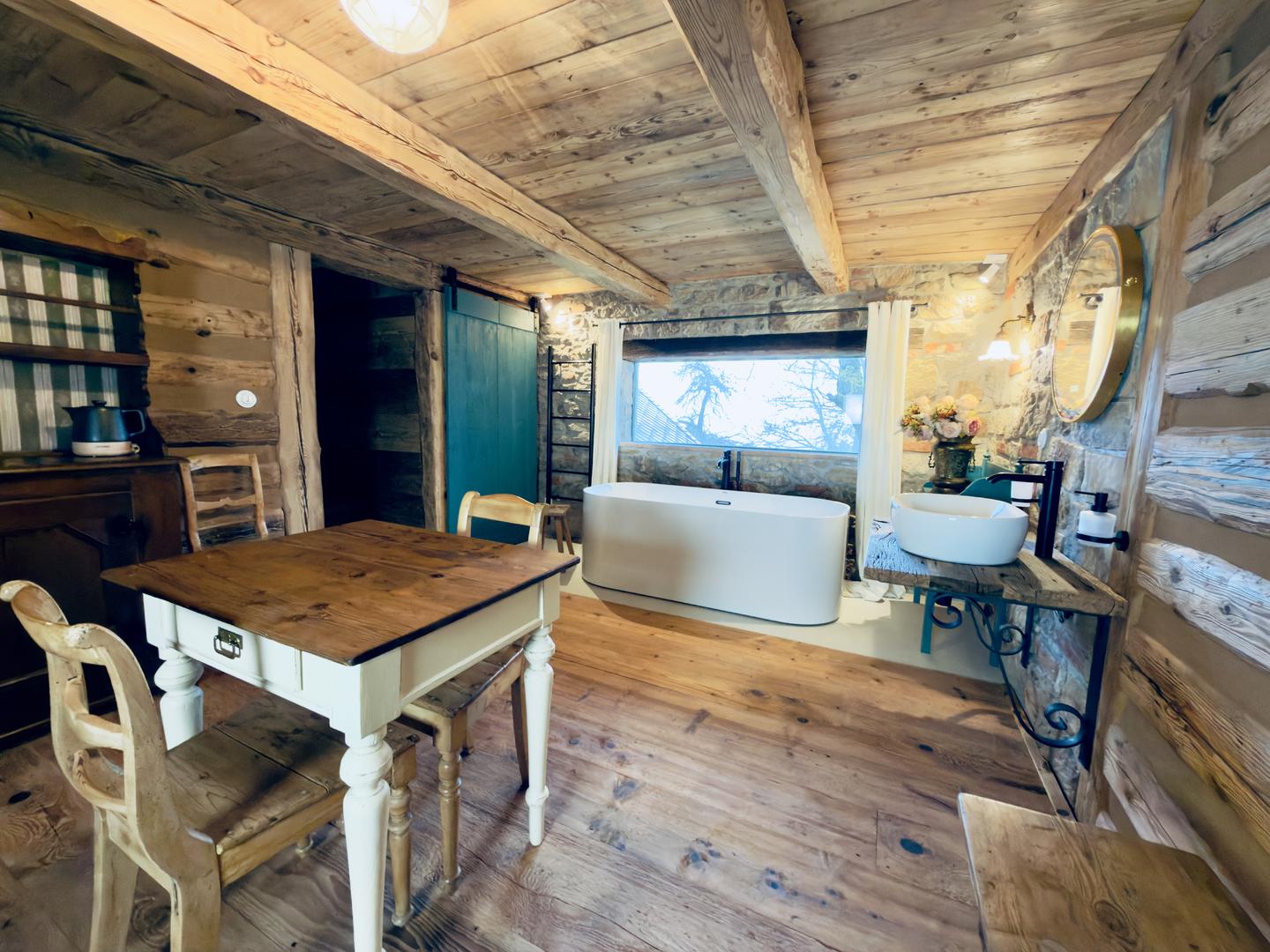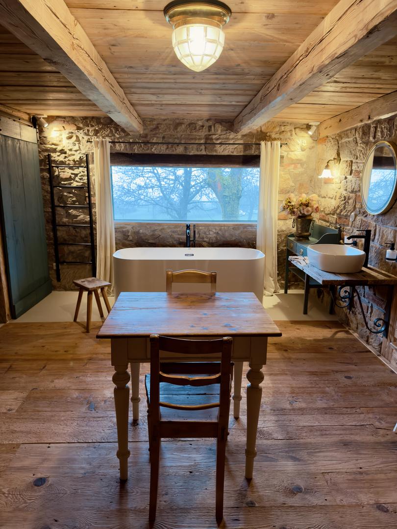 Mezonetový apartmá v citlivě zrekonstuovaném prostoru, který po staletí sloužil jako sýpka pro uskladnění obilí z oklních polí. Ložnice s manželskou postelí, útulnou obývací částí s designovou vanou a panoramatickým výhledem do starého sadu, které vytvoří tu pravou atmosféru. K dispozici samostatné WC a rozkládací lůžko pro 2 osoby. O váš klidný spánek se postará kvalitní matrace o výšce 22 cm.