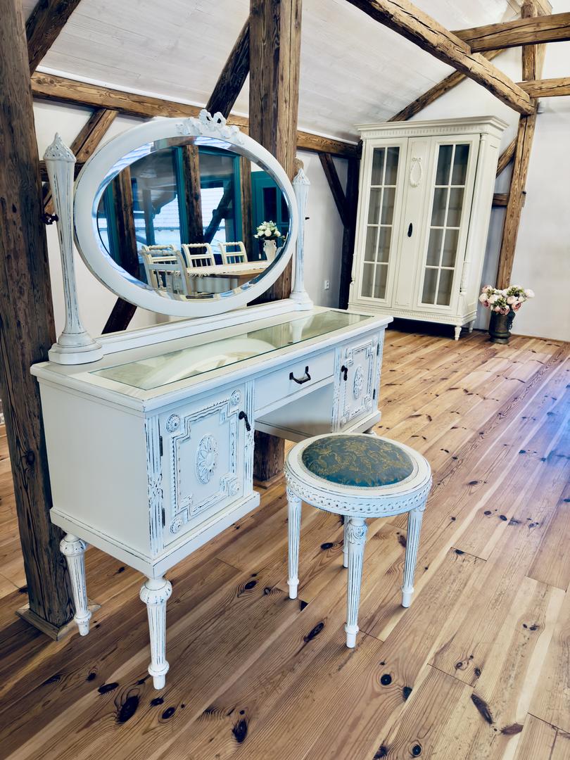 Zamilujete se do prostornosti tohoto romantického apartmánu! Představte si probuzení na pohodlné manželské posteli s levandulovou matrací, snídani u velkého stolu a večerní posezení na vlastní pavlačové terase s lahví dobrého vína. Koupelna se sprchovým koutem a 23 cm vysoká matrace s výtažky z levandule vám zaručí, že si odpočinek opravdu užijete.